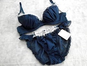 未使用☆ブラジャー&ショーツセット*レディースインナー*レース(ネイビー系)