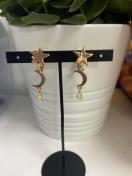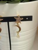 スターのイヤリングとムーンのジョイントパーツ、キュービックジルコニアを使用したイヤリングになります。