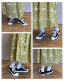 ┗ソール(底敷シート)クッション入りフカフカ♪更に、ふかふかクッションインソールおまけでお付けします♪2cmのゴムソールで衝撃も吸収♪綿コットンの天然素材で一年中大活躍♪モノトーンカラーで合わせやすくパキッとメリハリがあって可愛いですよ♪シンプルでお洒落可愛い編み上げローカットスニーカーです☆