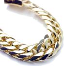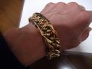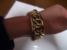 差し込み式なので、着けるときに楽です。プッシュするだけで着けられます。中折れ式だと一人で着けるときに難儀です。両方持っていますが、こっちの方が付けやすいし外しやすいです。買うときにいろいろ考えました。差し込み式だと勝手に外れるのではないかと思いましたが、思い切って買ってみたらそうでもなかったむしろ楽でした。長さも21cmで短いかと思いましたが23センチを持っていますが、こっちの方がはめ心地は良いです。長すぎても難儀です。見た目がリアルです。お金持ちって感じがします。全長:21cm 幅:22mm 厚み8mm Color:ゴールド カッティング:6面ダブル 重さ:125g 材質:ステンレス 太すぎて男らしく見えます。まさに男の中の男って感じがします。送料はこちらが、負担します。締切日時