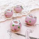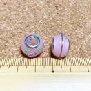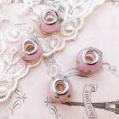 ミニ薔薇のような模様のランプワークガラス大穴ロンデルビーズです。