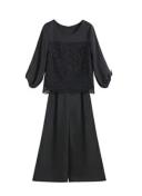 トップスにはフラワーレースを贅沢に使用したデザイン、華やかさをプラス。
