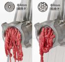 標準付属のカットプレートは細挽き(4mm目)・粗挽き(8mm目)の2種類で、作業に合わせてお使いいただけます。