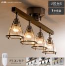19世紀の工業用照明からインスパイアされたインダストリアルデザインに、温もりある天然木を贅沢に取り入れた4灯シーリングライト