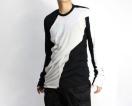 アシンメトリーなカッティングで色の違う生地を切り返したカラー使いが絶妙なデザイン。