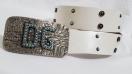 《カラー オフホワイト系レザー×ヴィンテージクロームシルバー×燻黒×ターコイズブルー系 (天然石かは不明)(バックルは画像参照ください)》
