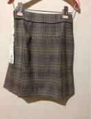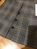 ブラウン系チェックにボックスのボタンかざりがおしゃれなスカートです