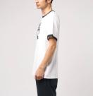 襟と袖の箇所のみカラーを切り替えたシンプルなデザインのロゴTシャツ