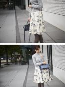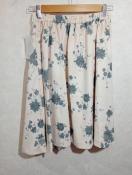ぼやっとした色味のフラワー柄をプリントしたフェミニンスカート。