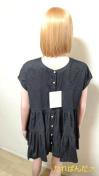 [商品情報] 薄手のハリ感のある素材のふんわりフレアチュニックです。背釦は8連のパールで素敵です。 ブランド:GALENA TOKYO(クレオス) 色:微光沢ブラック サイズ:M 平置き⇒肩幅58.5cm、胸元幅54cm、総丈71cm 素材:コットン ストレッチ:あり 裏生地:なし 他:新品タグ付きです。定価9,800