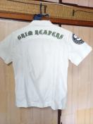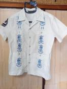 美品☆AVIREXレディースS☆半袖開襟シャツ(薄い水色地×水色スカル刺繍)