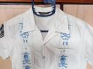 うす水色の開襟シャツ(一番上のボタンも閉める事が出来ます)