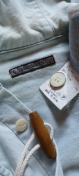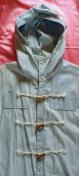 ┗予備ボタン1つ付き。両サイドポケット付き。裾ラウンドカット。フロント隠しボタン&トグル(ひも付きの留め木ボタン)開閉。木製ウッドボタンが可愛いです♪綿コットンの天然素材で肌触りも良く快適です♪むら染めブリーチ加工が小慣れてます☆とても爽やかで、お洒落可愛いフード付き長袖シャツジャケットです☆珍しいデザインで縫製も丁寧でブランドのこだわりが感じられる1枚ですよ♪