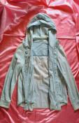 ┗予備ボタン1つ付き。両サイドポケット付き。裾ラウンドカット。フロント隠しボタン&トグル(ひも付きの留め木ボタン)開閉。木製ウッドボタンが可愛いです♪綿コットンの天然素材で肌触りも良く快適です♪むら染めブリーチ加工が小慣れてます☆お尻もスッポリ隠れて安心のロング丈♪とても爽やかで、お洒落可愛いフード付き長袖ロングシャツジャケットです☆珍しいデザインで縫製も丁寧でブランドのこだわりが感じられる1枚ですよ♪