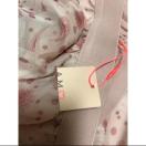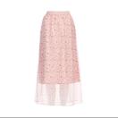 シアーなプリント素材とマットなピンクカラーの素材をレイヤードしたデザインで、美しい透け感とカラーのレイヤーが楽しめます。