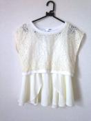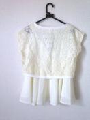 レースのショート丈トップスと