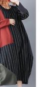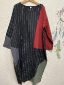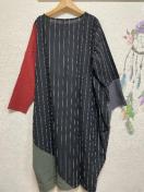 薄手長袖.パッチワーク風ストライプ柄オシャレ.楽ちんロングワンピースです^ ^