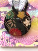 和柄の生地でくるみボタンのヘアゴムを作りました。