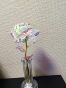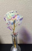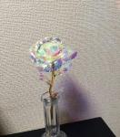 ◆オーロラに輝くローズが360°どこからみてもキラキラ輝き、見る角度によって様々なクリアなオーロラ色に変化して見える不思議なアートフラワーです。まるとライトを付けてるように光り輝いています。通常の造花と違いジュエリー感・アクセサリー感の強いアイテムです。