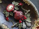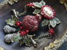 新品 アンティーク調ゴシックストーン鸚鵡ブローチ ヴィクトリアン ヴィンテージ風 オウム 鳥 インコ