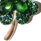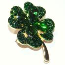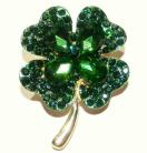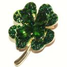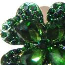 ゴールド色に緑色の葉っぱ、大粒と小粒のラインストーンが入って可愛いブローチです。