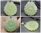 AAAネフライト菊花紋彫り 石高さ約48.7mm 横約43.5mm 厚さ約10.5mm