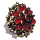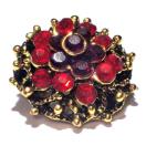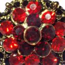 ゴールド色にルビーのような赤色のラインストーンが入って可愛いブローチです。