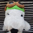 頭には緑色のヘルメットと茶色いゴーグル、首には赤いスカーフ。