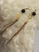 黒ベースにラメを散らした花火風パールにカラフルなダイヤレーンを繋いだ左右アシンメトリーデザインのピアスです(*^^*)
