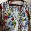 ボタニカル柄、オーバーショルダー、サラサラした感触のロング丈トッパー。薄手なので冷房対策等でインバッグしてても邪魔になりません。