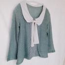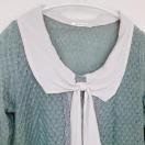 薄手のサマーニット、襟付きリボンタイのモード系なトップスです。