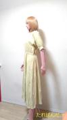 [商品情報] ふんわり柔らか素材が心地よい、軽やかな背紐リボンのワンピです。 ブランド:mikke 色:マスタード系 サイズ:F 平置き⇒肩はラグランスリーブです、胸元幅51cm、着丈124cm、ウエスト(ゴム入)36cm、裾幅118cm、袖丈37cm 素材:コットン ストレッチ:あり ファスナー:なし 裏生地:ウエストより下部にあり 他:新品タグ付きです。