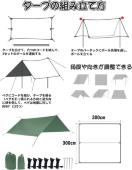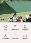 「付属品」:天幕本体×1 ロープ×6 ペグ×4 専用収納袋×2