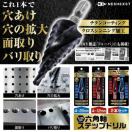 【性能】ステップ仕様 1mm、2mm感覚で穴あけ可能です。 ステップ9段穴あけ深さ5mm六角軸(6.35mm) 電動ドリル