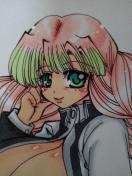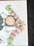 市販の色紙に描きました「鬼滅の刃・蜜璃」です。