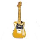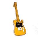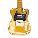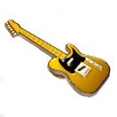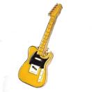 黄色のボディに、黒色のピックガード、金色の縁取りでかっこいいバッジです。