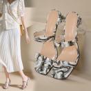 足元に旬の抜け感を出してくれるクリアヒールサンダルです
