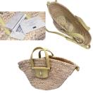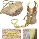 バカンスのワードローブに揃えておきたい、ビーチに最適なラフィアのバスケットバッグ。イエローのレザーとのコンビの洗練されたスタイルのジミーチュウのかごバッグ。