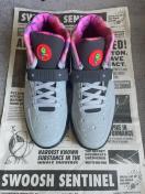 "チャールズ・バークレー(CHARLES BARKLEY)"が履いていた"search AIR FORCE MAX"を、"バキュームテクノロジー(VACH TECH)"の技術によってブラシュアップした一足が、"search エアフォースマックス2013"である。今回は、オールスター記念モデルということで、随所にギミックを搭載したスペシャル仕様で登場。アッパーとミッドソールに、銀河の星を連想させる、細かなスプラッタープリントを採用。 宇宙をイメージしたグラフィックをライニングに使用。ヒールやストラップ補強パーツには、メタリックなパーツをプラス。アウトソールは暗闇で光る"蓄光(GLOW IN THE DARK)"仕様となっている。またシュータンやインソールには、宇宙人の"レイガン"を施すなど、随所に遊び心を盛り込んでいる。