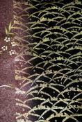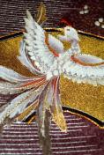 ・金彩 赤紫に黒暈し染め 金駒シシュウ 鳳凰 地紙 露草