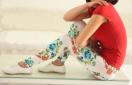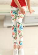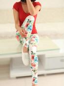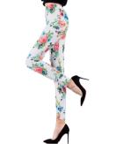 送料無料 レディース 牡丹柄 レギンス パンツ 花柄レギパン ホワイト