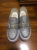 玄関に保管していた為か白い部分に汚れありです。履いてしまえばさほど目立たないかとは思いますが感じ方には個人差がありますので、