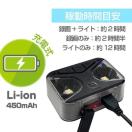稼働時間目安:録画+ライト:約2時間、録画のみ:約2時間半、ライトのみ:約12時間