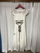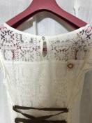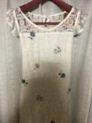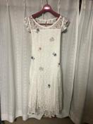 総レースのロマンティックなフェミニンワンピース。レトロビンテージ風なスクエアモチーフのレースにフラワー刺繍をしたオリジナル素材。
