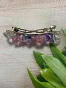 ハンドメイド レジンで作った鉱石のバレッタ ピンク、パープル系