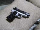 1/6スケール GIジョークールガール ACTION FIGURE用 玩具 COLT M1911改 デトニクス・コンバットマスター フレームSILVER 新品未使用!でございます。1/6スケール GIジョー等フィギュア用専用玩具アイテムのルーズパーツでございます。勿論ミニチュア玩具なので弾は発射できませんし、火薬等で使用することもできません。 デトニクス社製のガバメントモデルで、小型ガバメントモデルの元祖でもある。しかし、ただ小型化しただけではなくいくつかの改良も加えられており、部品も本家コルト・ガバメントモデルとできる限り互換性を持たせてある。隠し持つのに丁度良い大きさであるため、アメリカの私服警察官などに使用された。ハンマーを素早く手で起こすために設けられた、スライド後端のスロープが特徴的。そのデザインから、日本ではコルト社製ガバメントモデルの短縮型と勘違いされ、「コルト・デトニクス」などと呼ばれることもあるが、コルト社製ではないのでこれは誤りである(コルト純正のそれは「ディフェンダー」と「オフィサーズ」 (実物の説明・仕様) ■サイズ■ 全長3cm程 スライド 多少可動 マガジン脱着可能 弾丸取り出し可能 ABS製 ⚠️この商品は、ミニチュアアクションフュギュア専用玩具で1/6スケール(実物の6分の1縮尺)のミニチュア玩具です。実物の人間サイズではございません。