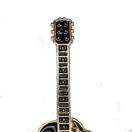 黒色のボディに、黒色のネック、金色の縁取りでかっこいいバッジです。