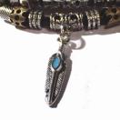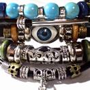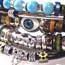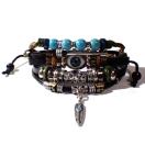 その他、ターコイズブルー色の石や、銀色やブロンズ色の装飾された金具の付いたカッコいいブレスレットです。