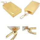 大きめのスクエアにCELINEのロゴ、パールを一粒あしらった存在感のあるペンダントチャーム。太めチェーンと合わせてニットにもシャツとも相性〇。