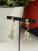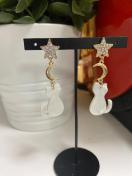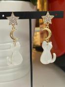 おすわり猫のシェルパーツと月のパーツを使用したスターピアスになります。